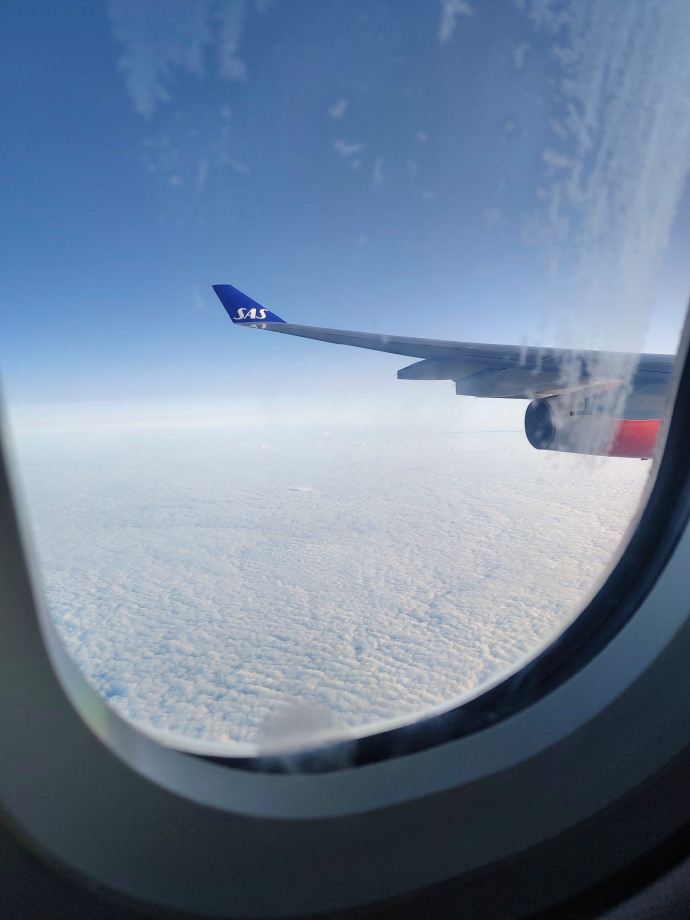上海到冰岛没有直飞,北欧航空基本都是在哥本哈根转机,为了保险起见我们选择了中转13个小时的行程,行李直挂,在哥本哈根过夜。也是想趁晚上休整一下,连续飞14个小时的经济舱有点太酸爽了。
