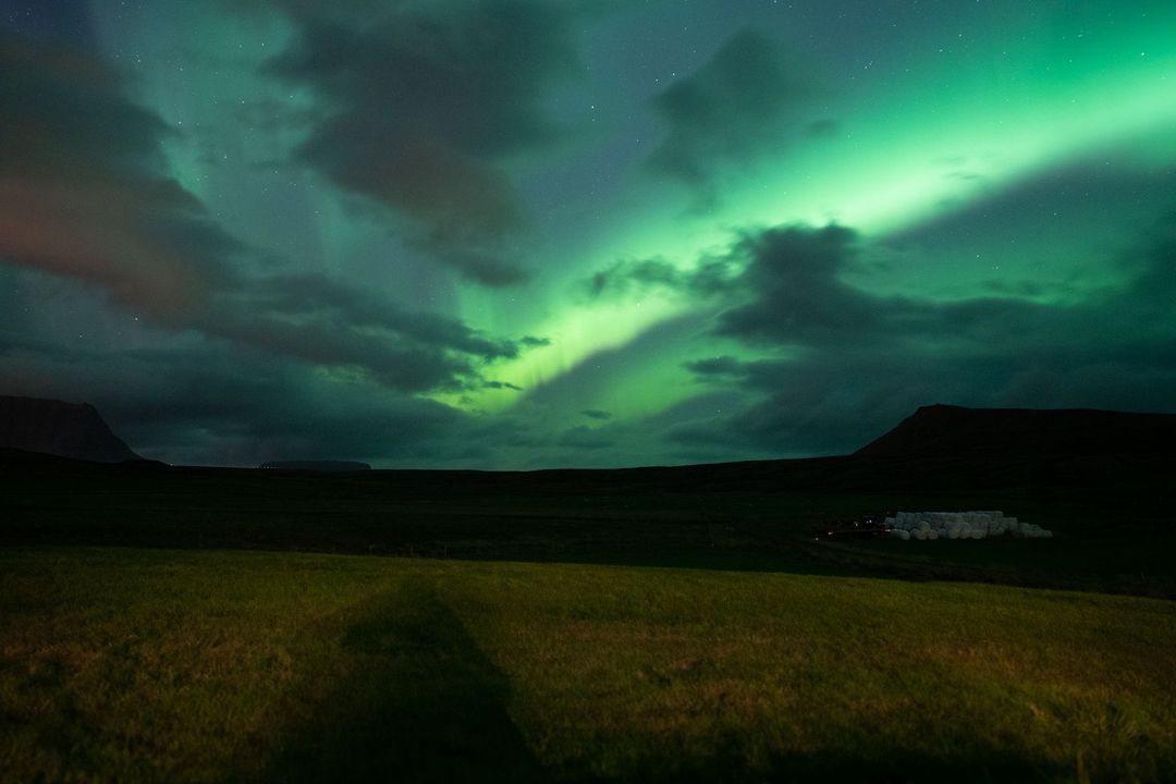 后来,还驱车几十公里,到处转了转,云逐渐变少,但极光强度也逐渐减弱,我们在凌晨时无功而返,当时只有一点点微光了。