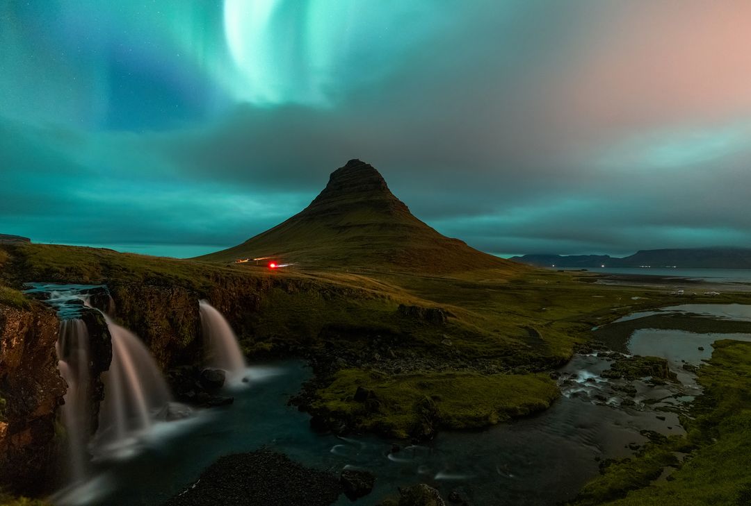 草帽山不愧为冰岛的标志之一,形态优美还自带瀑布作为前景,瀑布的大小又恰到好处,不会喧宾夺主。即使已经在各种各样的大片中看过漫天红云、极光舞动、冰雪覆盖下的草帽山,亲眼看到仍然觉得很美。要是能在这里看到极光该多好。