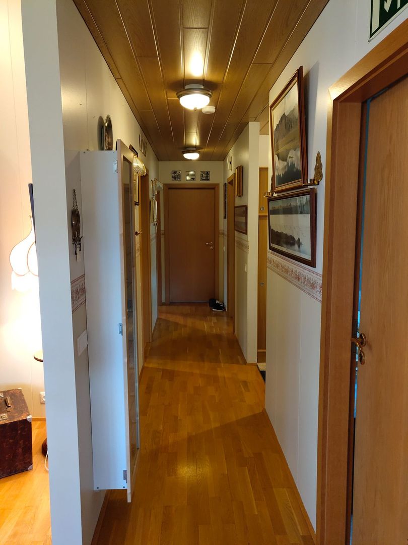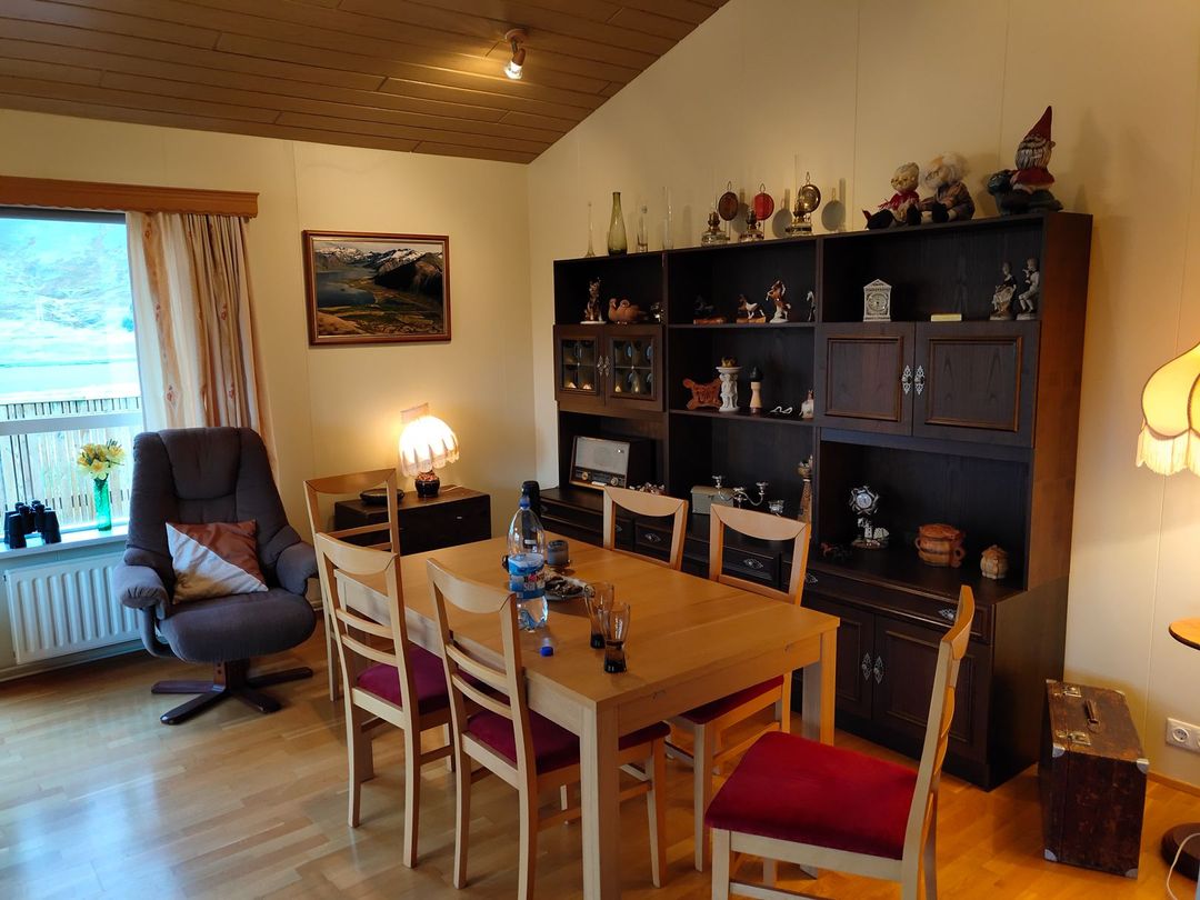 农场小屋有三房一卫,一个晾衣间再加上厨房和客厅。屋后是一扇玻璃门,近处是牧场的草坪,远处是湖和山。除了不面朝大海春暖花开以外,简直完美。屋内陈设有些旧,不过木制家具时间久了会呈现出的那种年代质感加上暖色的灯光,倍感温馨。