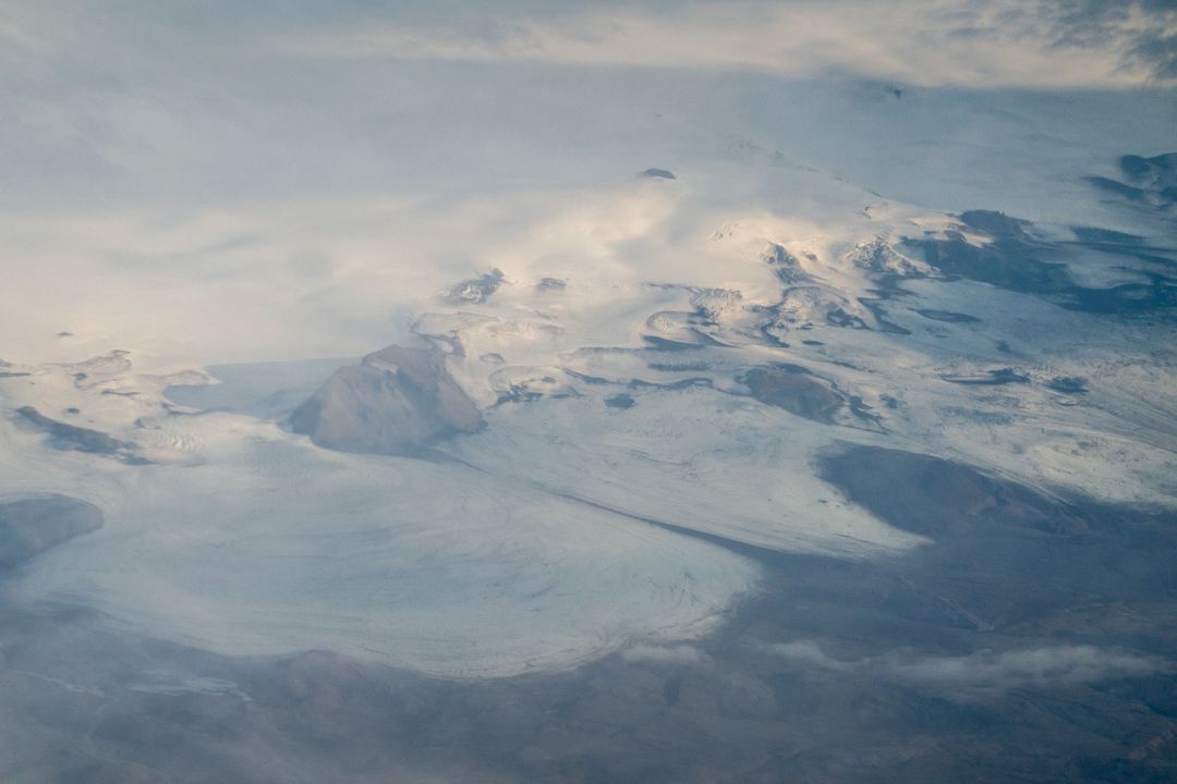 飞机在无边的北大西洋上空飞行,景色不断重复,不知过去了多久,下面多了一片大陆,白色雪山、血脉一样的河流、荒原、地热区、湖泊,荒凉原始,在阳光之下又充满了各种颜色,就是它了吧。