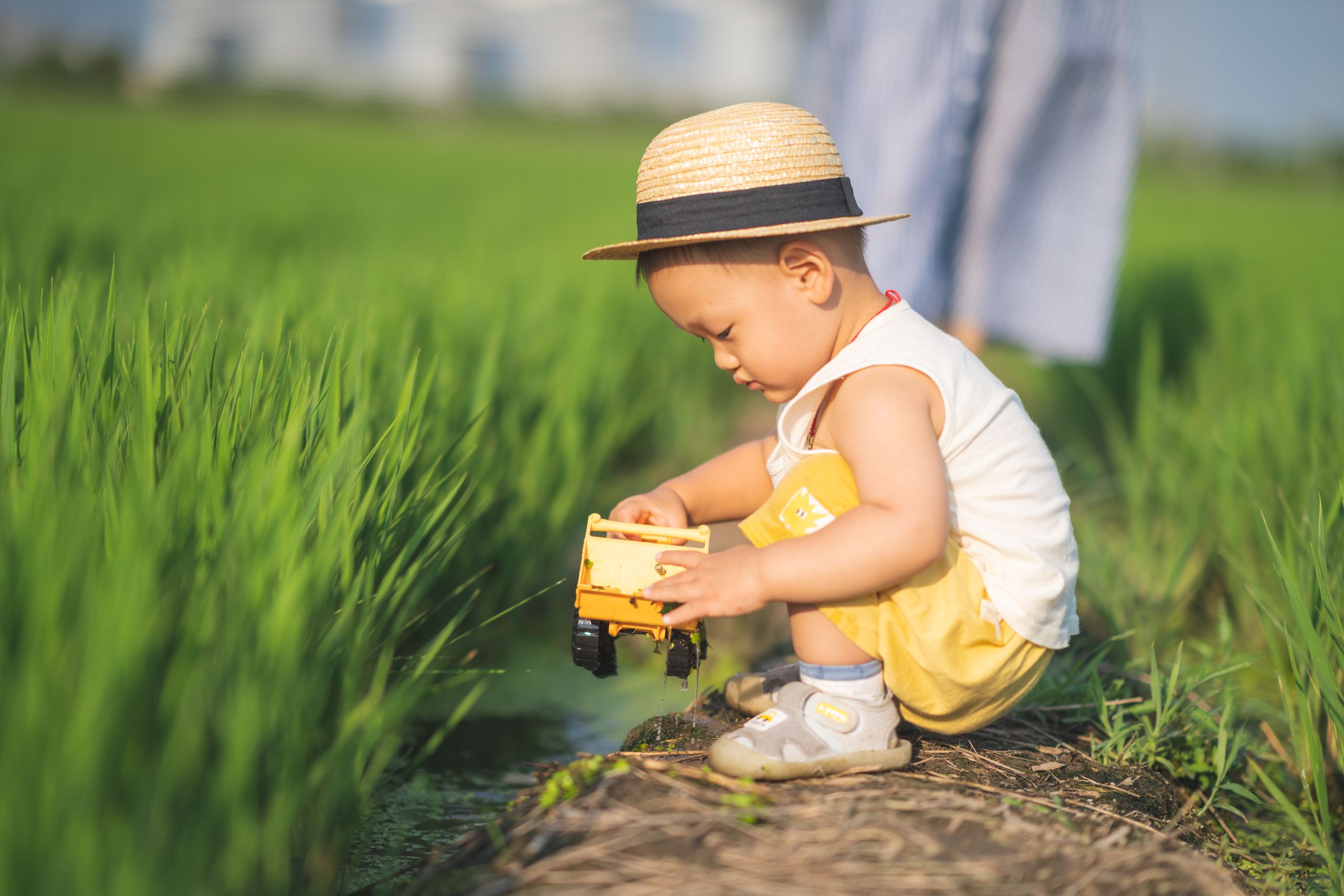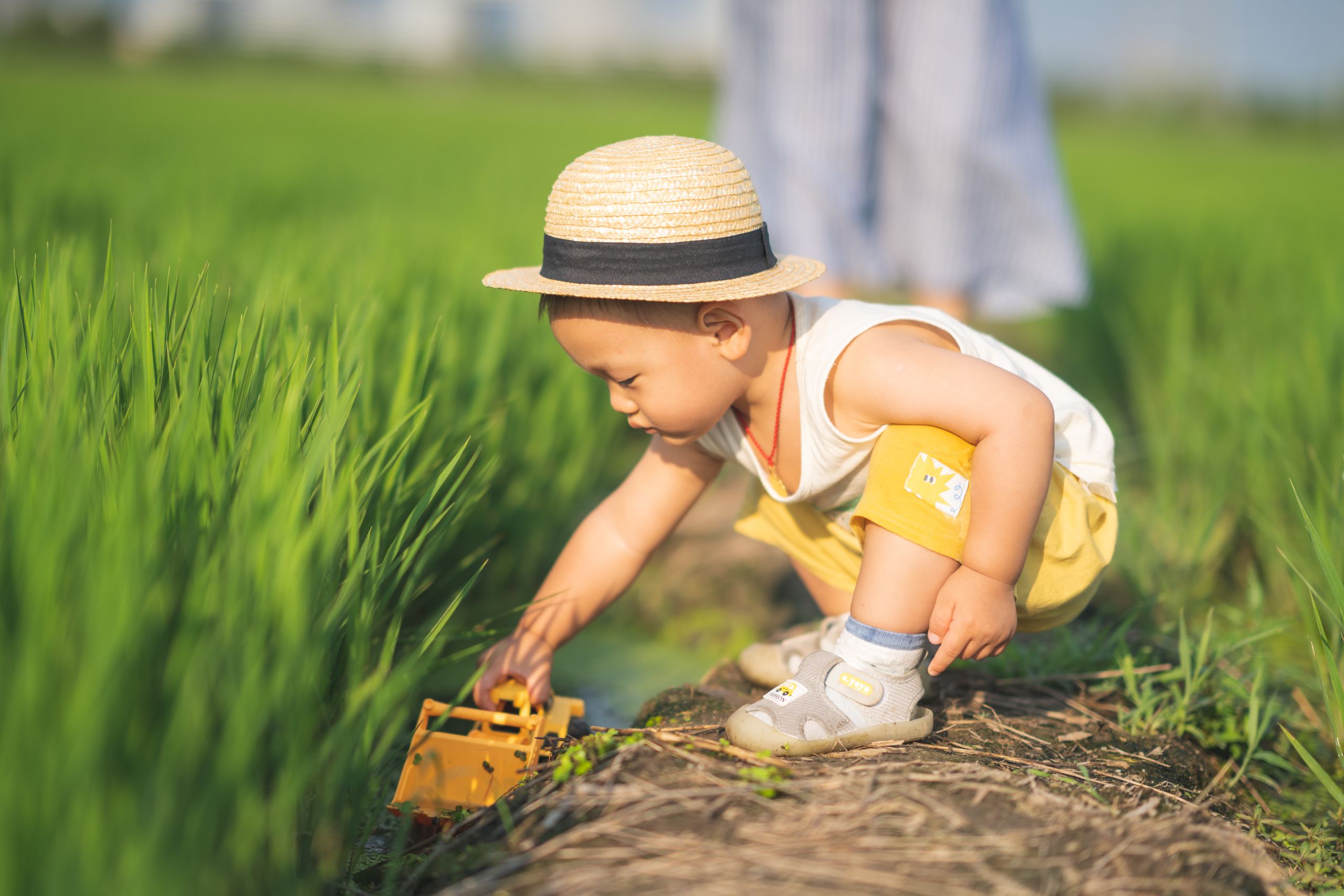本来说每月都要给他拍一张照片,到了金华之后就中断了好几个月。回来后我们给他买了小帽子,想拍点有夏天感觉的照片,直到最近才实现。