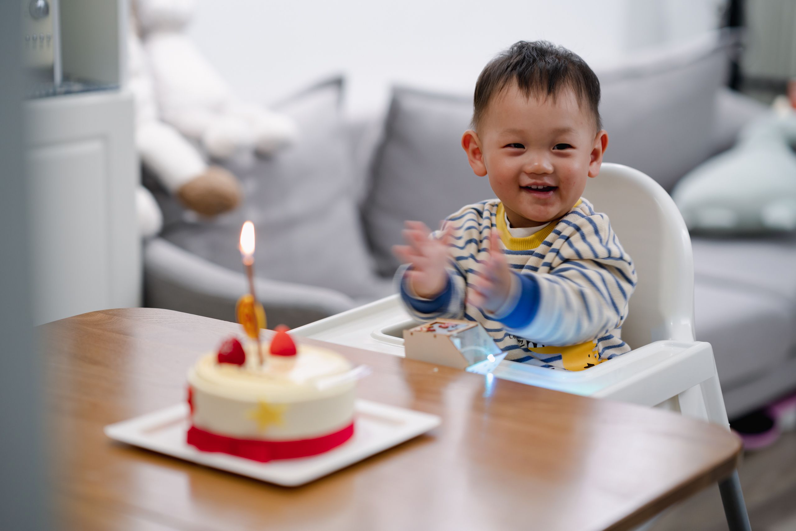 这一年,他学会了叫爸爸妈妈;过了一岁生日;学会了第一个字母;扑在土堆上玩的浑身是泥巴;学会了拼拼图;开始讲故事;向别的小朋友炫耀自己学会的字母;学会了说“忘记了”来糊弄爸爸妈妈;收到了爸爸妈妈送的圣诞礼物与新年祝福。