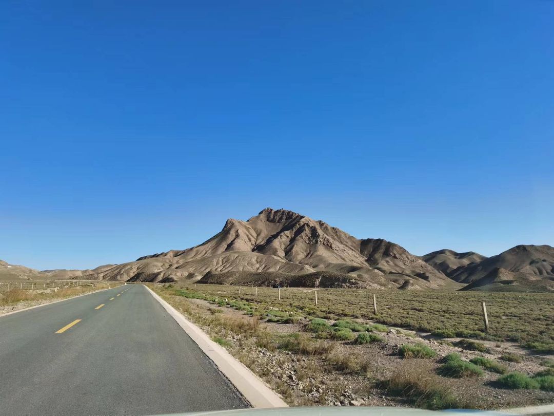 翻过了北山,是另一幅景象,远远地看见一座矮山,像是内蒙古大红山那样一个土台。这个地景真是深得我心。这里叫做红寺湖,却并没有湖。沿着公路一直下坡,转了个很大的弯,几乎来到了矮山后面,结果路边的牌子上赫然写着“军事区禁止摄像”。#¥#@!¥(!&(¥,一个小时的车白开了。