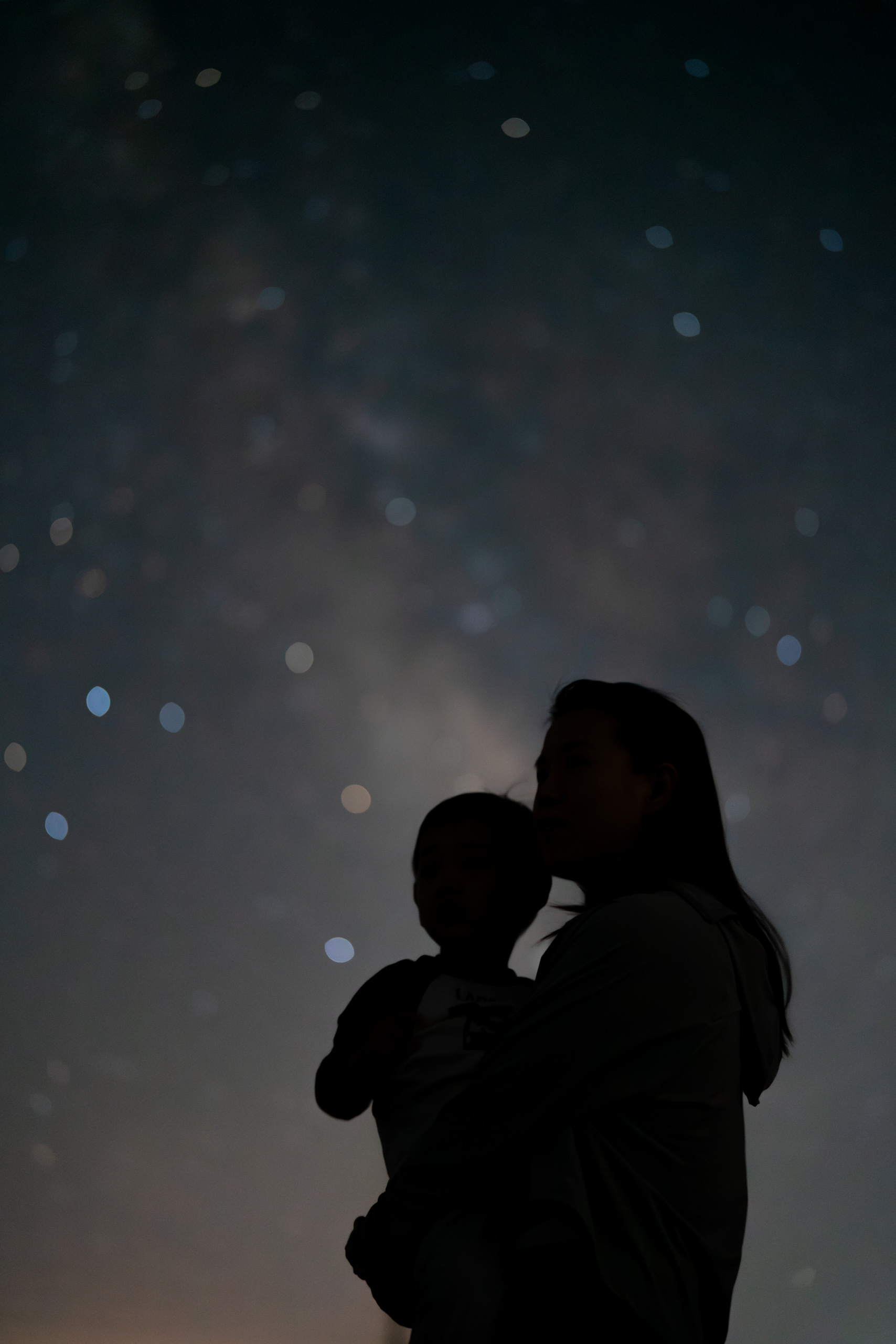 小羽有点吃惊,平时他们只能在院子里看,旁边有路灯,没想到银河居然这么清晰。给小万万指了北斗七星,卡梅拉里叫做平底锅星座,他说他看到了🤣。英仙座还没升起来,但抬头仰望,偶尔有流星划过。小羽看到好几颗,小万万应该没看到,他只看到了像火车一样开过的星链,马老板的银河铁道😆。