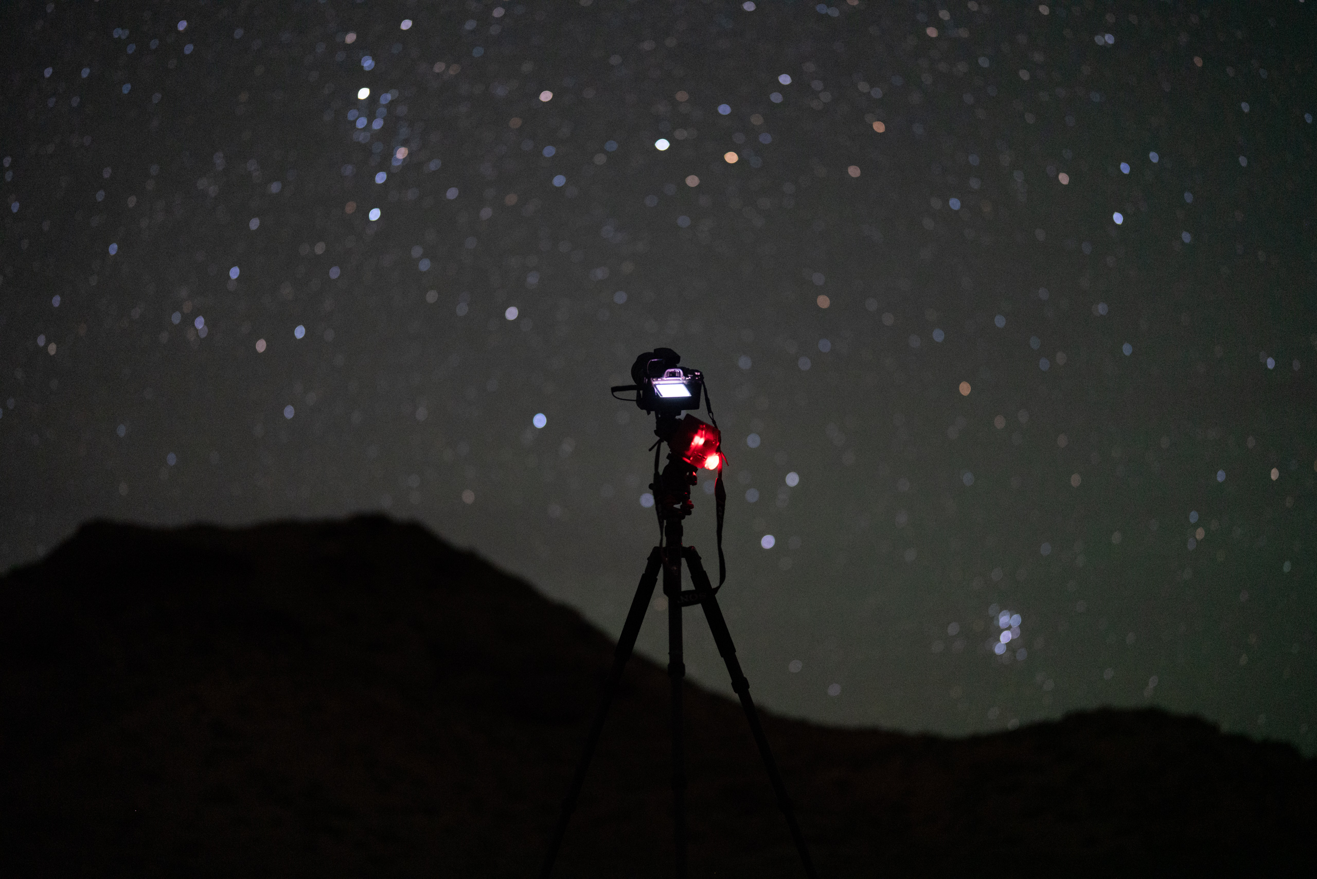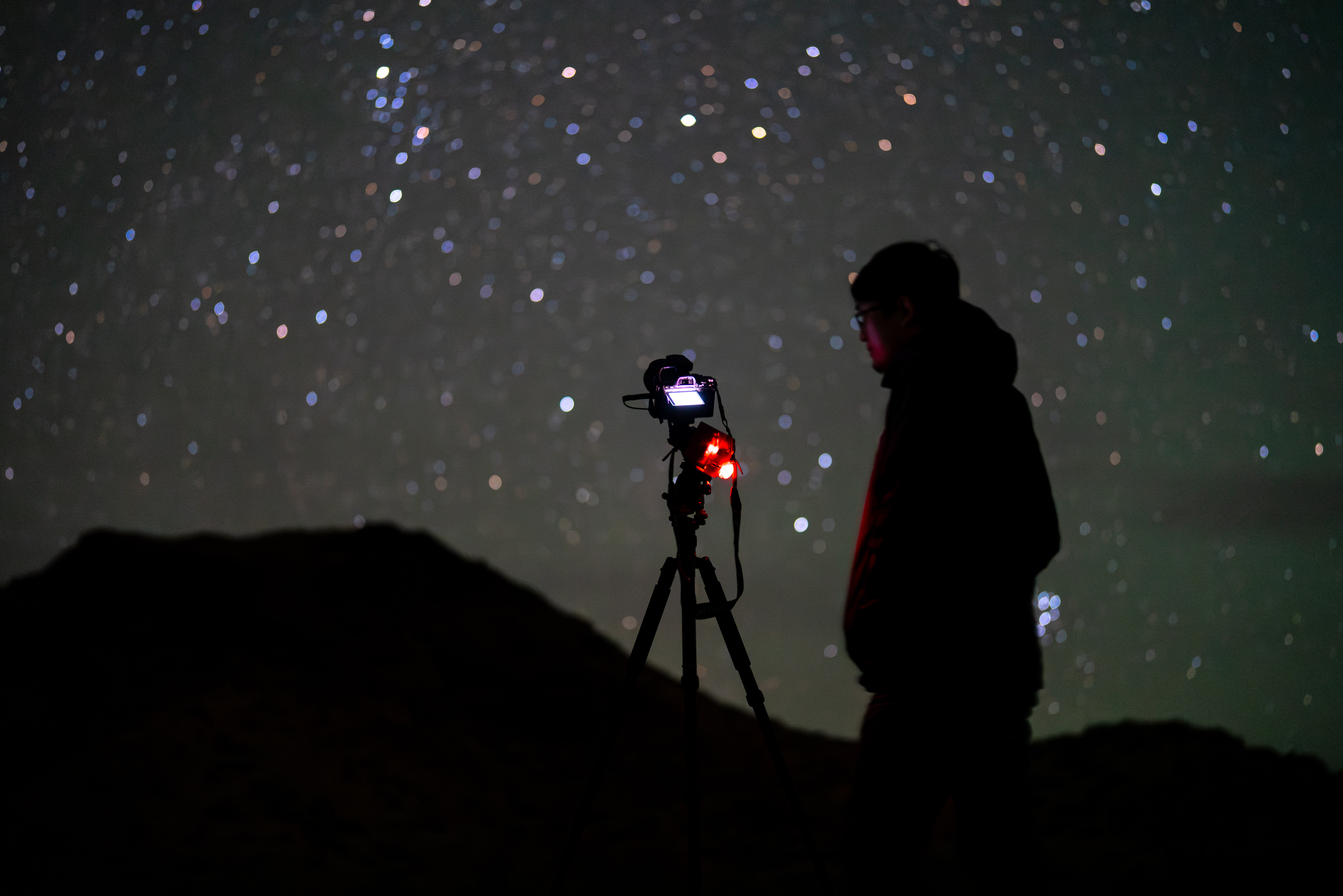 架好两台相机,一台14mm,一台50mm。后半夜这里会转为多云,我的时间不多。拍完底图后,转换成自动拍摄模式,希望能抓住一些流星。顺便用50mm自拍了几张。
