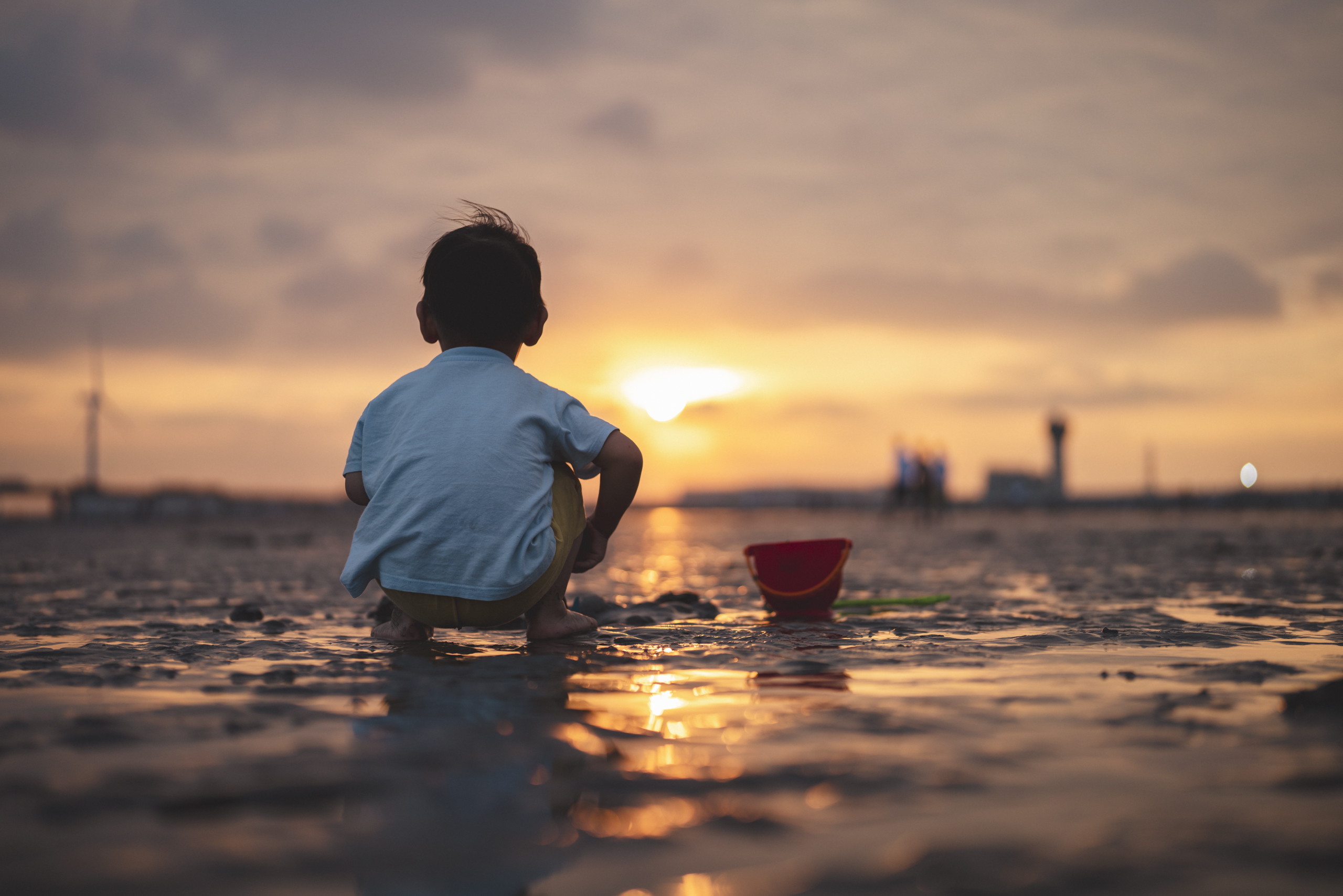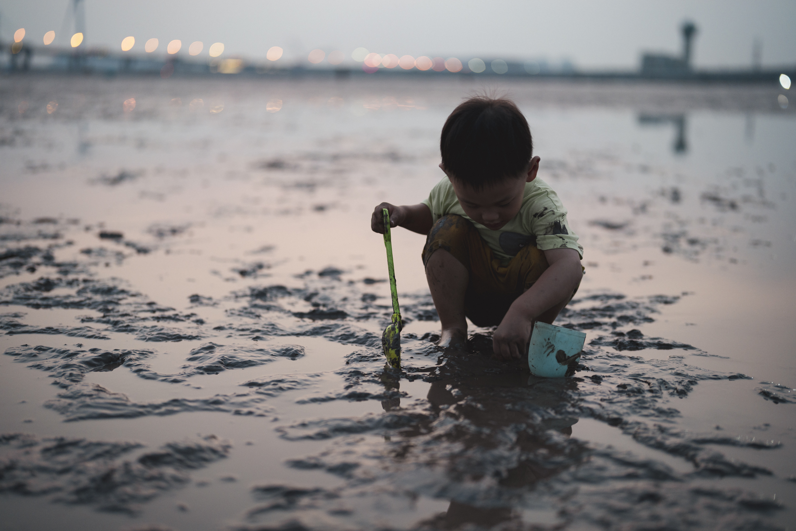 夏天带小万万去过几次临港海边,他总是在泥浆和浅水中玩得不亦乐乎,忙着挖沙坑和追赶螃蟹,来的时候不肯来,回去的时候不肯走😂。