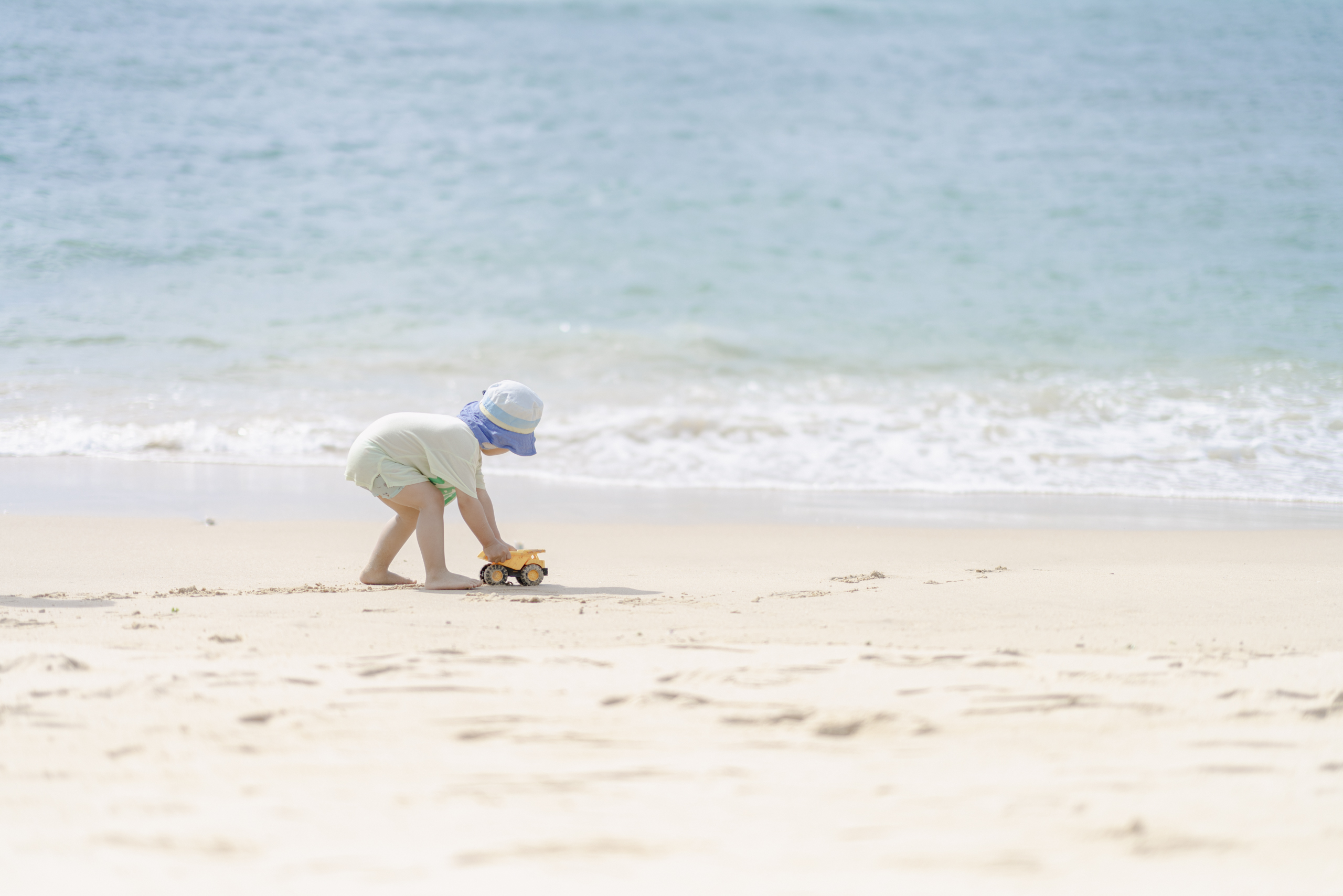 取车后去往龙楼镇,大概一个多小时的车程,小万万看着窗外的亚热带植物有些好奇。带幼儿出行最不方便的是吃饭,他还不能适应大人的饮食,如果去餐馆的话就只能凑合着吃点。我们去超市买了一些生活用品和蔬菜,顺便给他买了个冰激凌,自夏天结束之后也是很久没吃了,他很开心。完事之后已经快下午三点,终于要到海边了。