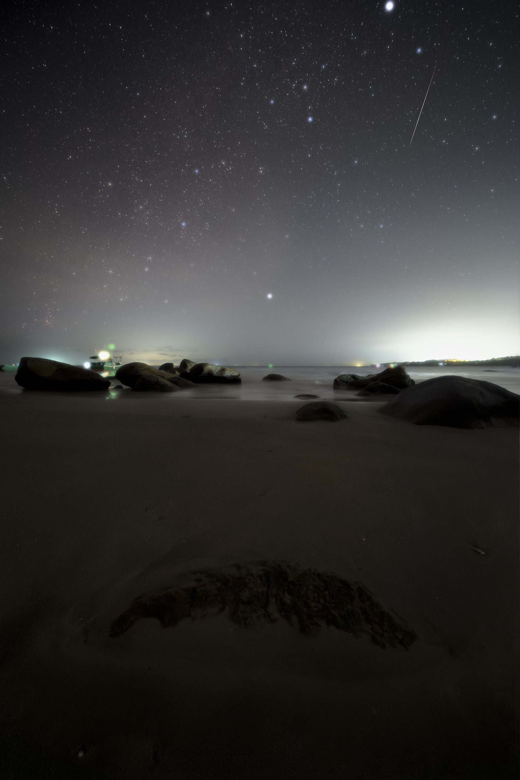 背上器材出门去娱乐一下。本次出行完全没有拍流星雨的计划,白天也没有踩点,好在淇水湾海滩我想当熟悉,此时正好退潮,完全不用担心安全问题。