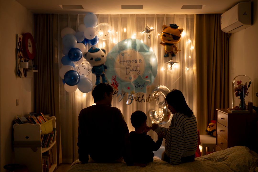 吃完蛋糕,玩了一会,拍好照片,鸡飞狗跳的一天总算结束了。
