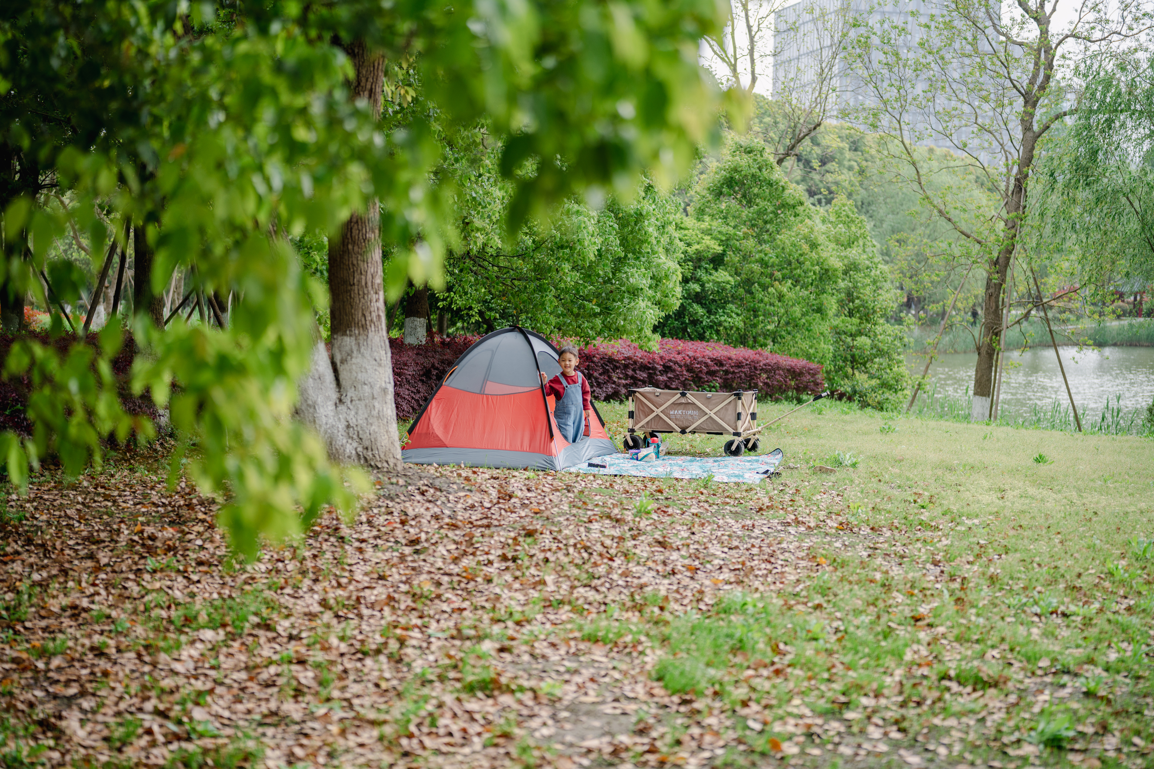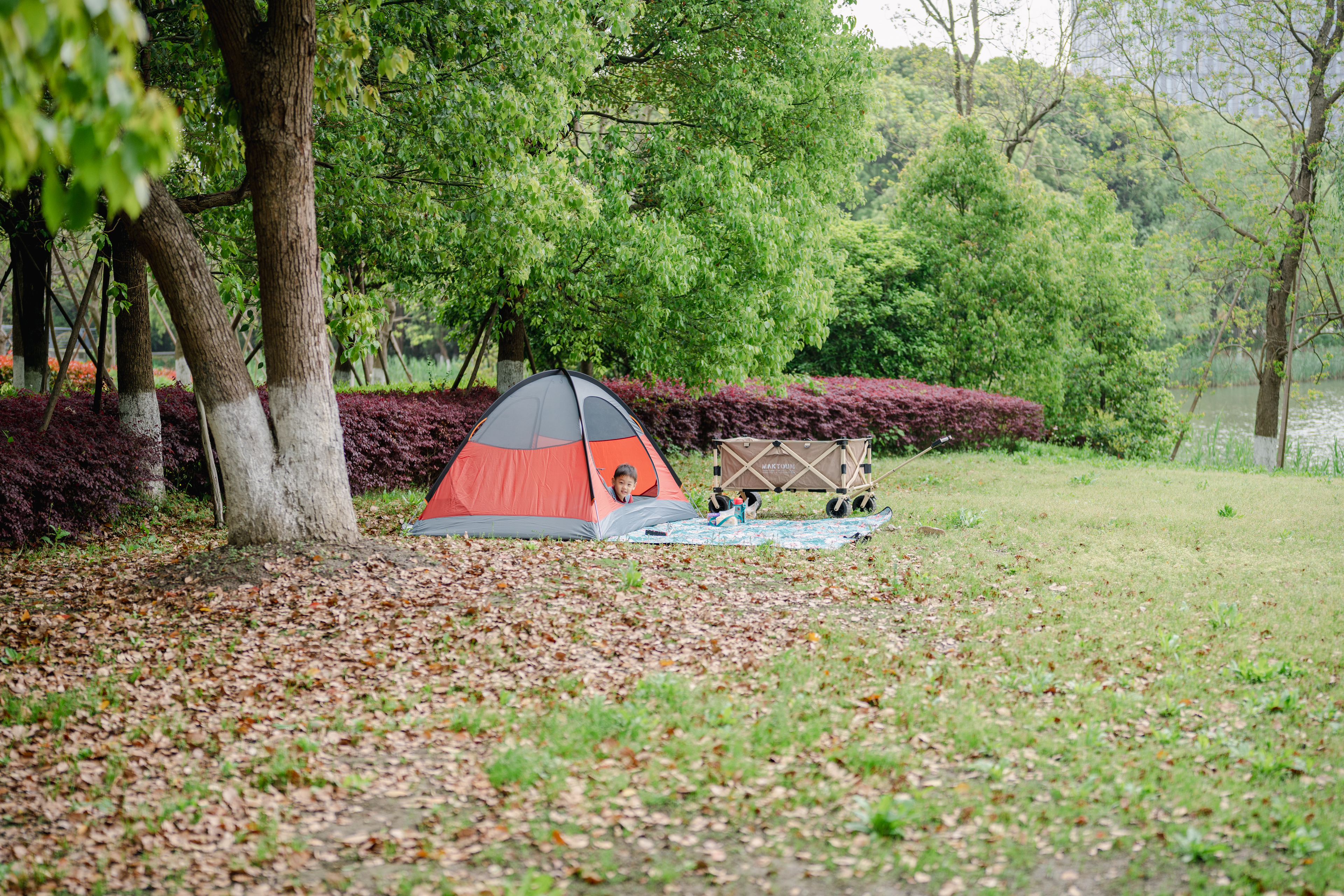 今年没再去辰山植物园拍樱花,而是尝试带小万万出去露营。2岁时的他不敢进帐篷,似乎会触发某种幽闭恐惧的开关,现在已是进出自如;2岁半的时候给他买了滑步车,又哭又闹怎么也不愿意骑,现在也已经来去如风,跑步都难以追上。