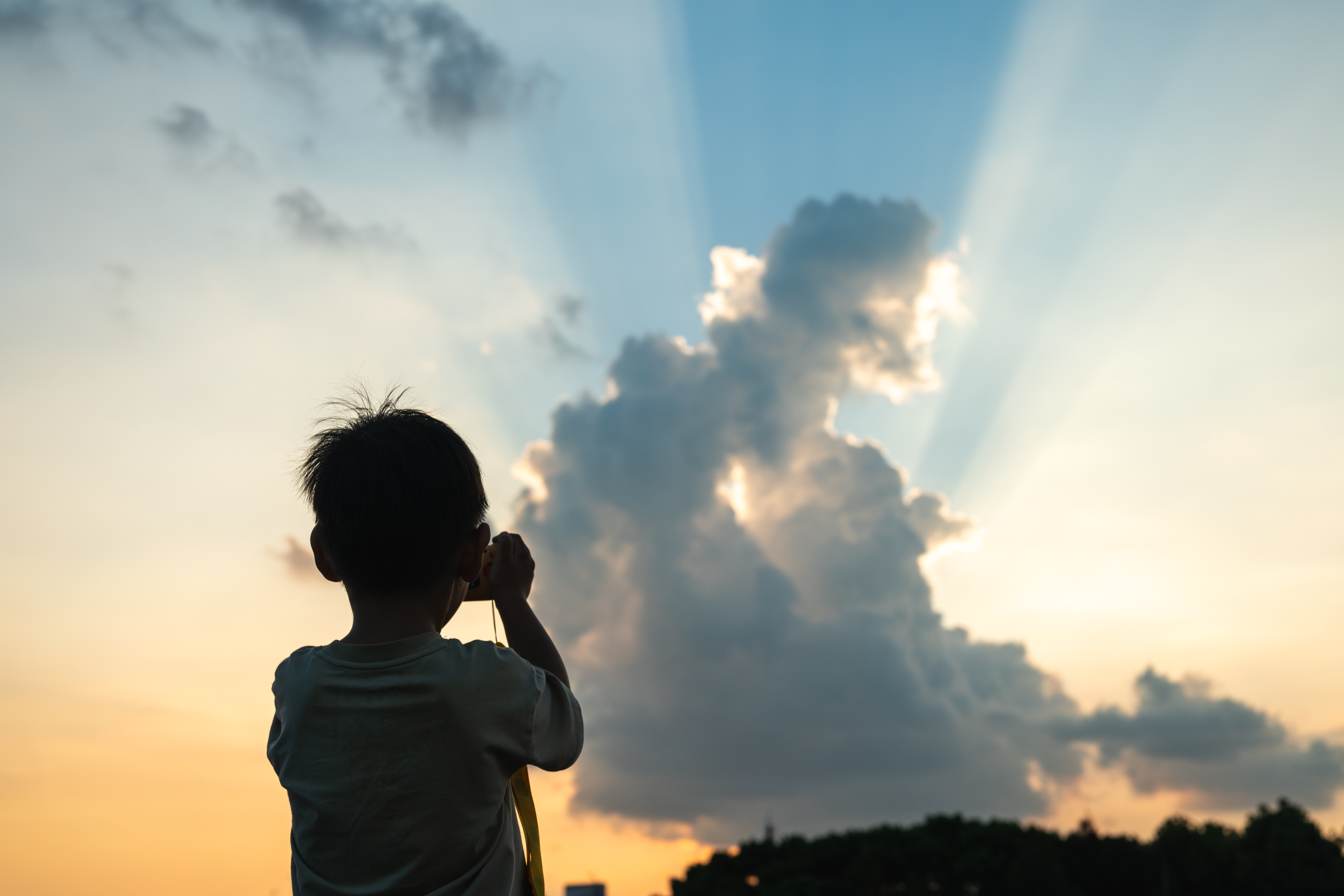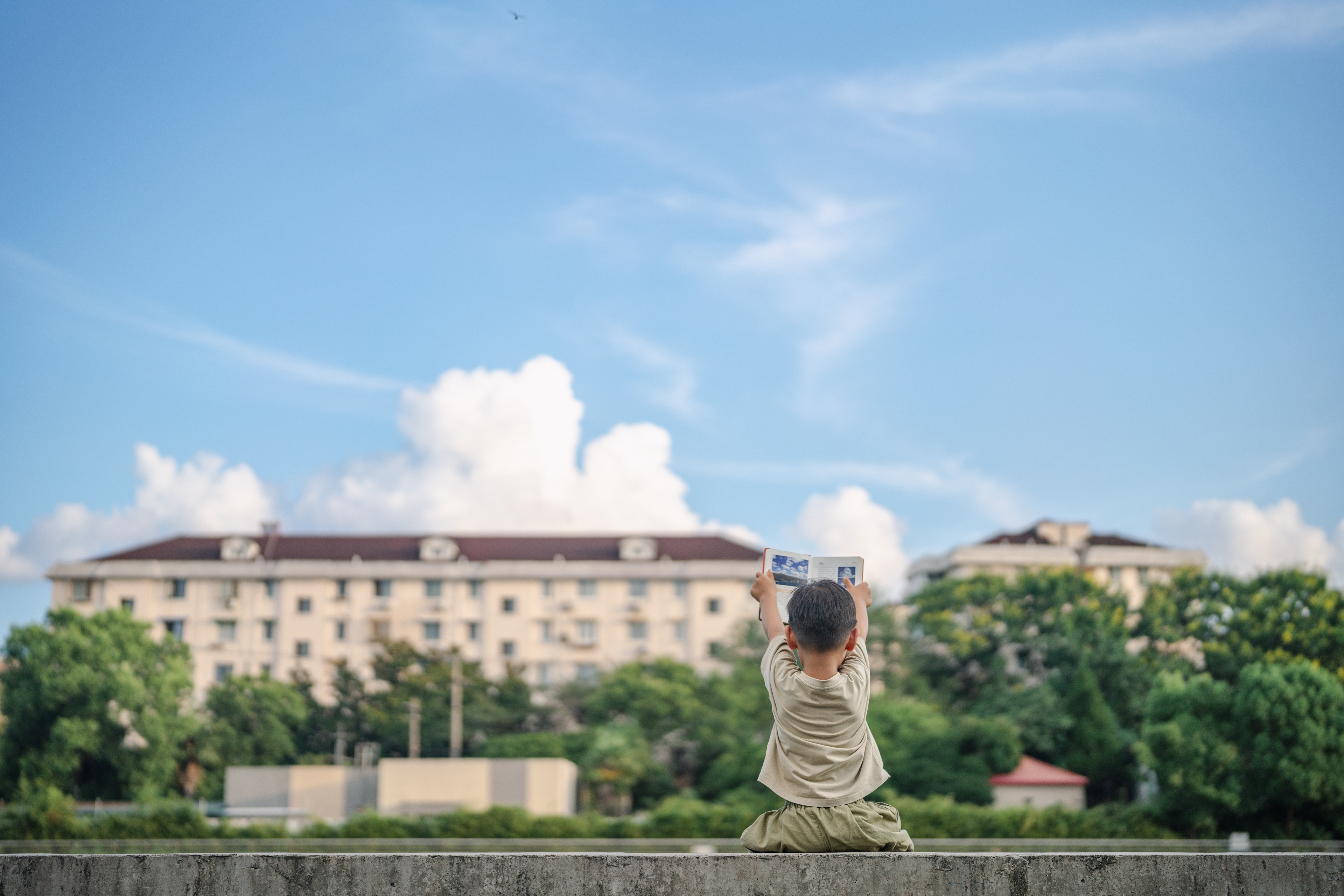 夏天快结束时,想起了一件遗憾的事。小万万虽然经常吵着看云彩收集者手册,也经常观察天空,但我并未帮他和夏天多变的云彩拍合影,比如浓积云云塔。
