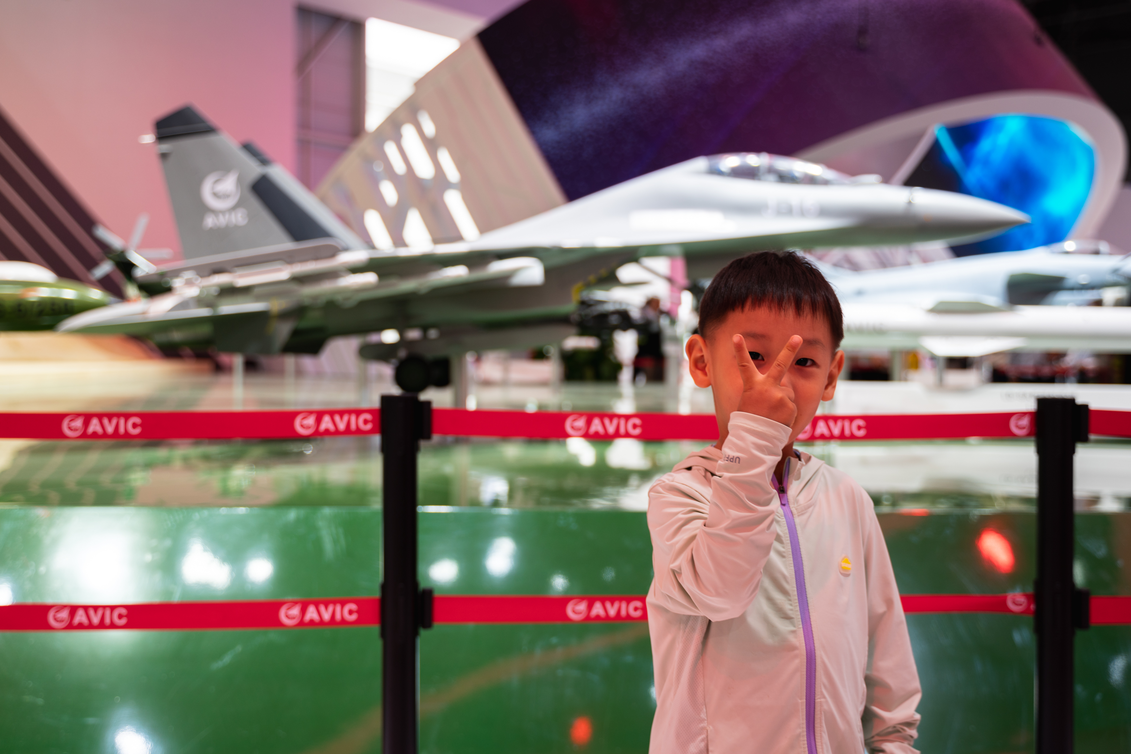 新手并无好运,航展当天,风雨大作,不得已只能全副武装穿着雨衣出发,还要和几万人挤来挤去…体验极差。等我们以为天晴无望提早离场,回到酒店后居然夕阳西下,八一表演队登场。没办法,带娃出行有时候就是这么无奈。不过小万万也是见了世面。