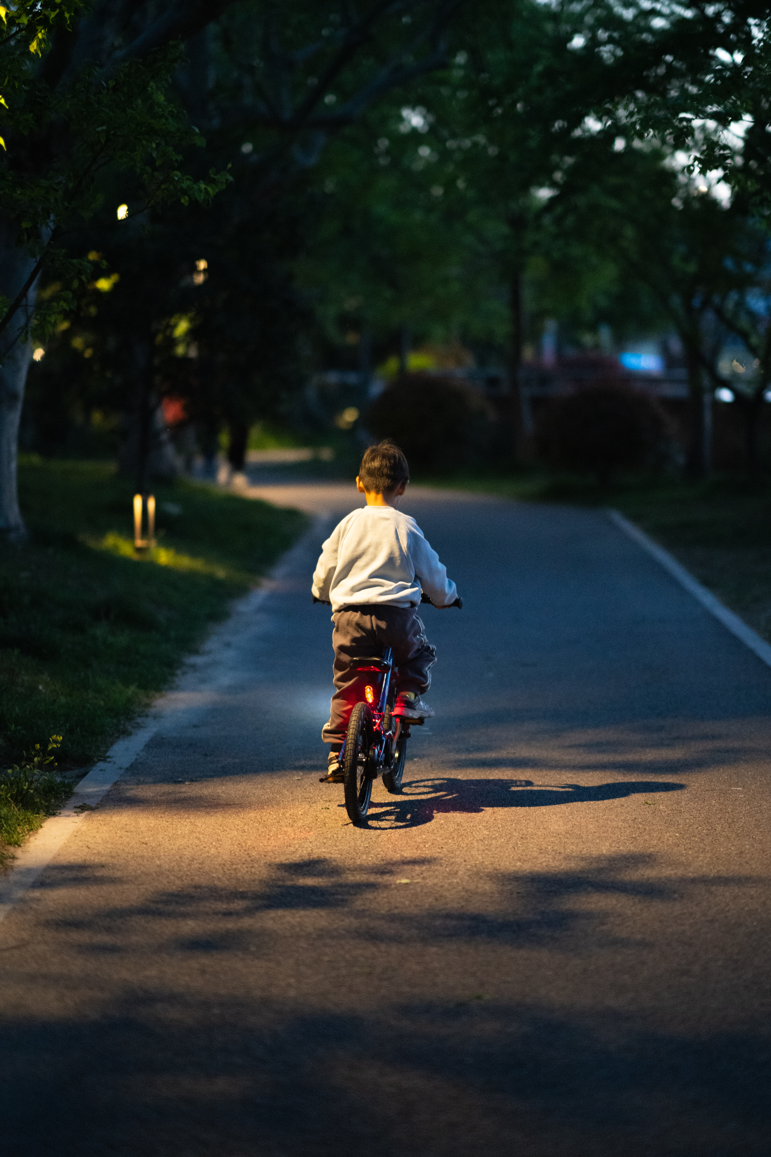 小万万原来的坐骑是一辆红色的14寸迪卡侬自行车。最近春暖花开,带着他去了环迪斯尼绿道骑车,一碰到有岔路短暂分离然后再交会就咯咯咯的笑。还有一次在明镜荡断断续续骑了10公里。这两小车已经渐渐不堪重负,身高马上要超过上限了,踏频飞快速度却很慢,于是有了换车的想法。