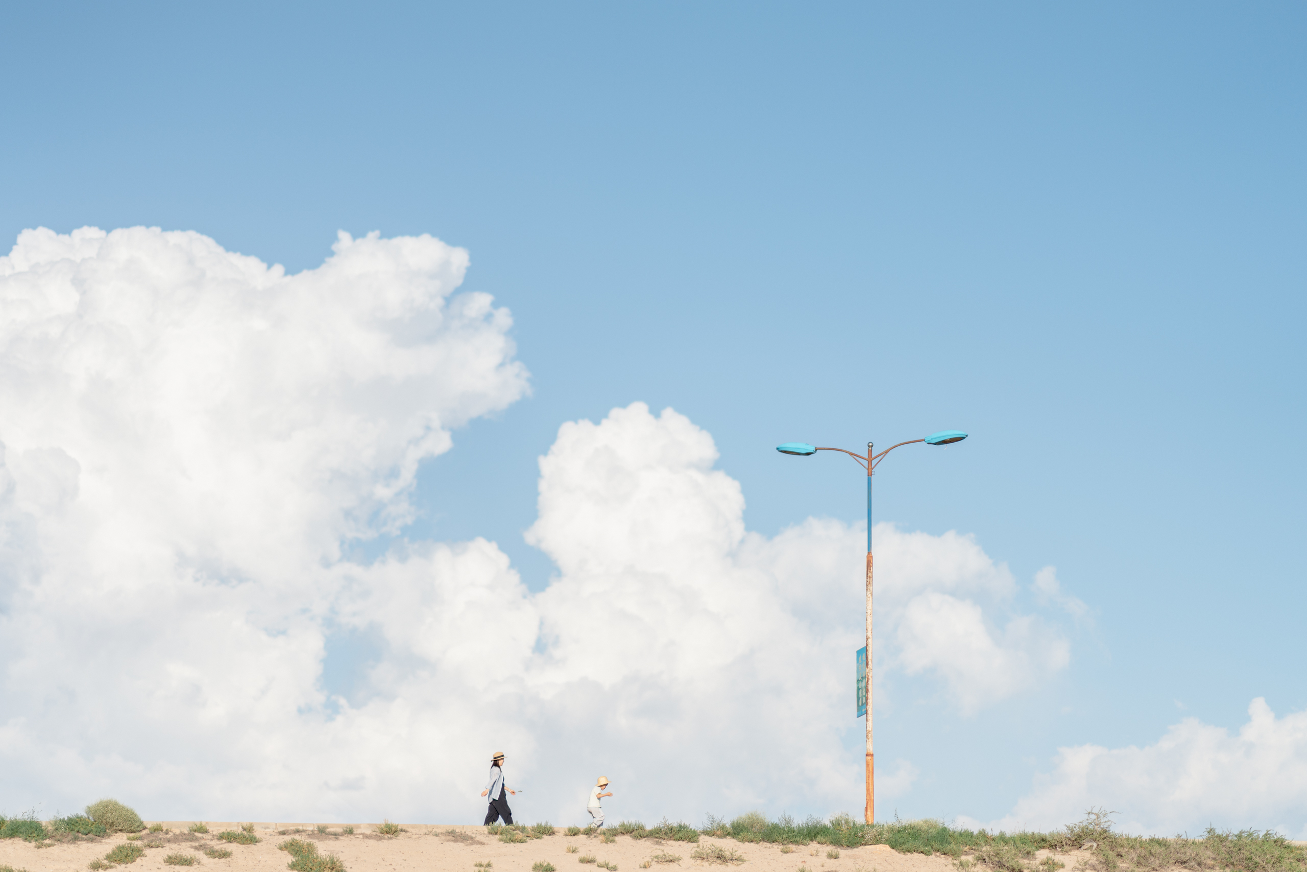 堤坝的落差正好带来了斜向上的视角,加上几朵积云,拍到了相当夏天的照片。